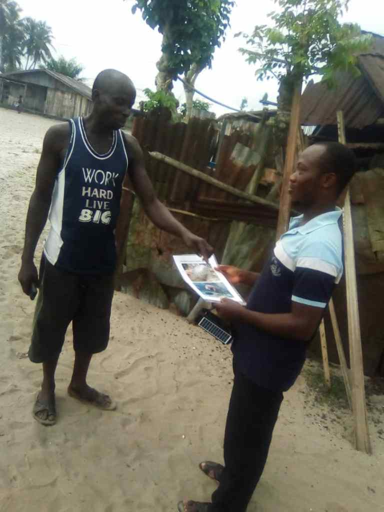 Most of the people he interviews are Ikales and Ilajes that understand Yoruba language (his native language), while the Ijaws are predominantly fishermen that understand Yoruba and pidgin English. The few that he cannot communicate with are interpreted by an official local guide which makes the work easier.